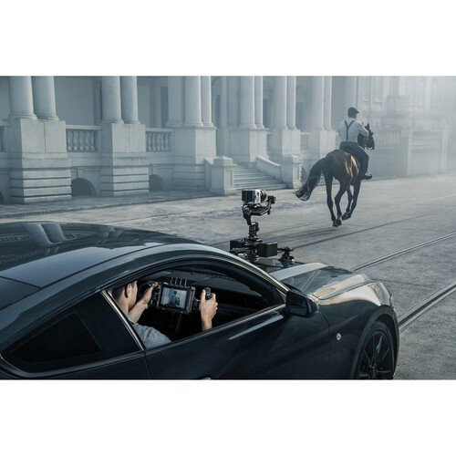 The High-Bright Remote Monitor can be used with Ronin 4D Hand Grips, DJI Master Wheels, or DJI Force Pro to control the gimbal and focus precisely. It is also equipped with a built-in gyroscopic sensor that can turn the remote monitor into a standalone motion controller for RS 3 Pro without additional accessories to achieve more complex camera movements from a moving vehicle or with a jib.