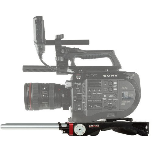 With SHAPE's Sony FS7M2 V-Lock Quick Release Baseplate you can build a 15mm LWS rig around your FS7 or FS7M2 camera. The included 15mm rods enable you to mount a matte box, follow focus, lens support or other production accessory. Since the plate is designed for the FS7, correct lens height is ensured for correct accessory clearance. A rear insert plate is included to support the raised rear portion of the FS7 body, increasing the surface area of the camera base.