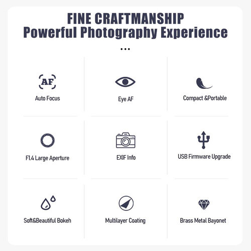 - Aperture Range: f/1.4 to f/16
